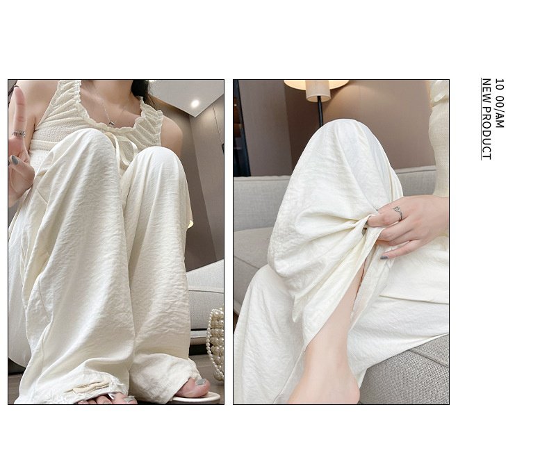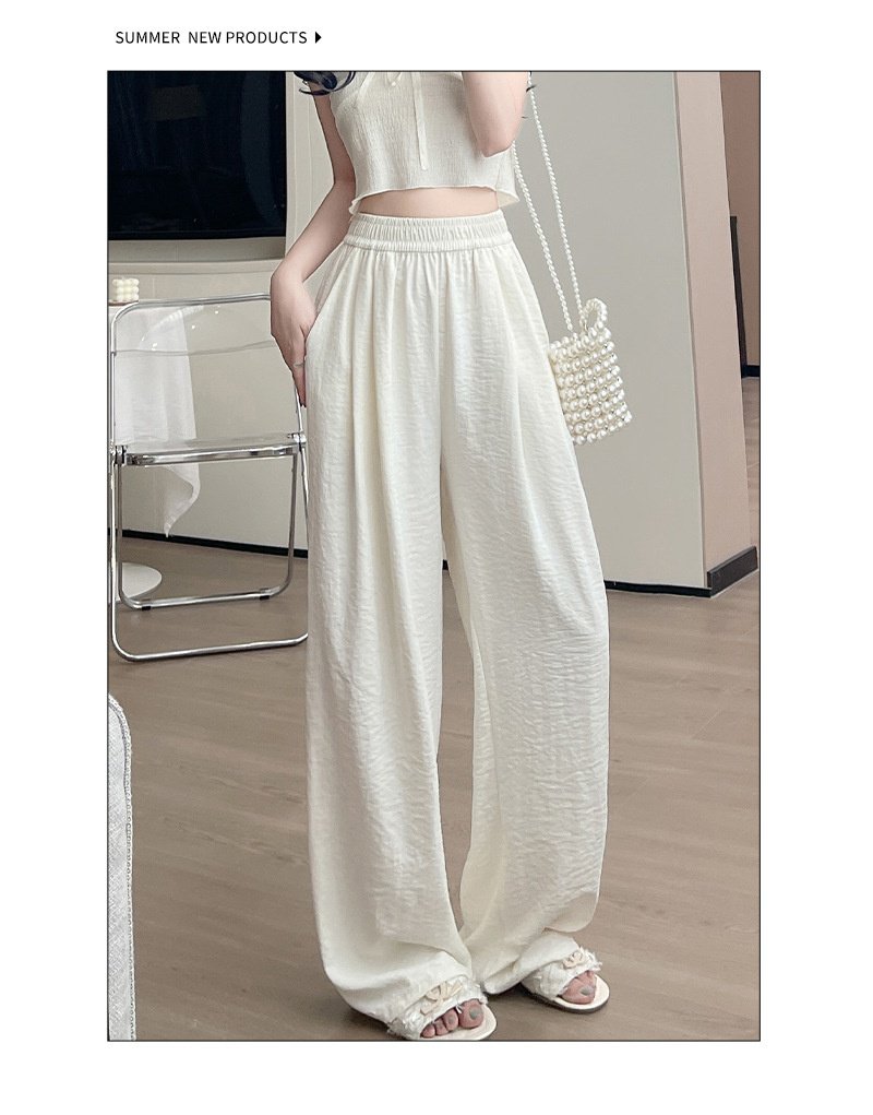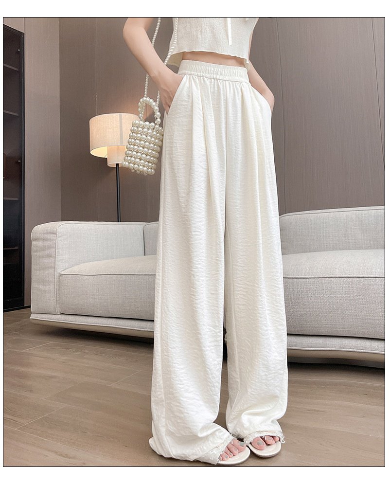 クリームムースヤマモト パンツ レディース 夏 カジュアル 多用途 ドレープ クリーム パンツ テクスチャード レイジー アイスシルク ワイドレッグパンツ